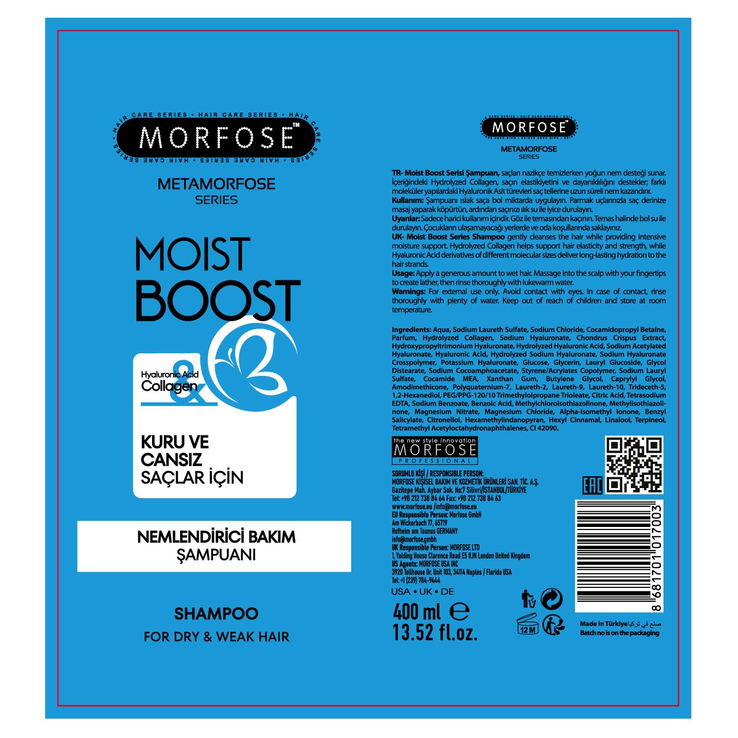 MORFOSE KİŞİSEL BAKIM VE KOZMETİK ÜRÜNLERİ SAN. TİC. A.Ş.Gazitepe Mah. Aybar Sok. No:7 Silivri/İSTANBUL/TÜRKİYETel: +90 212 738 84 64 Fax: +90 212 738 84 63www.morfose.eu /info@morfose.eu