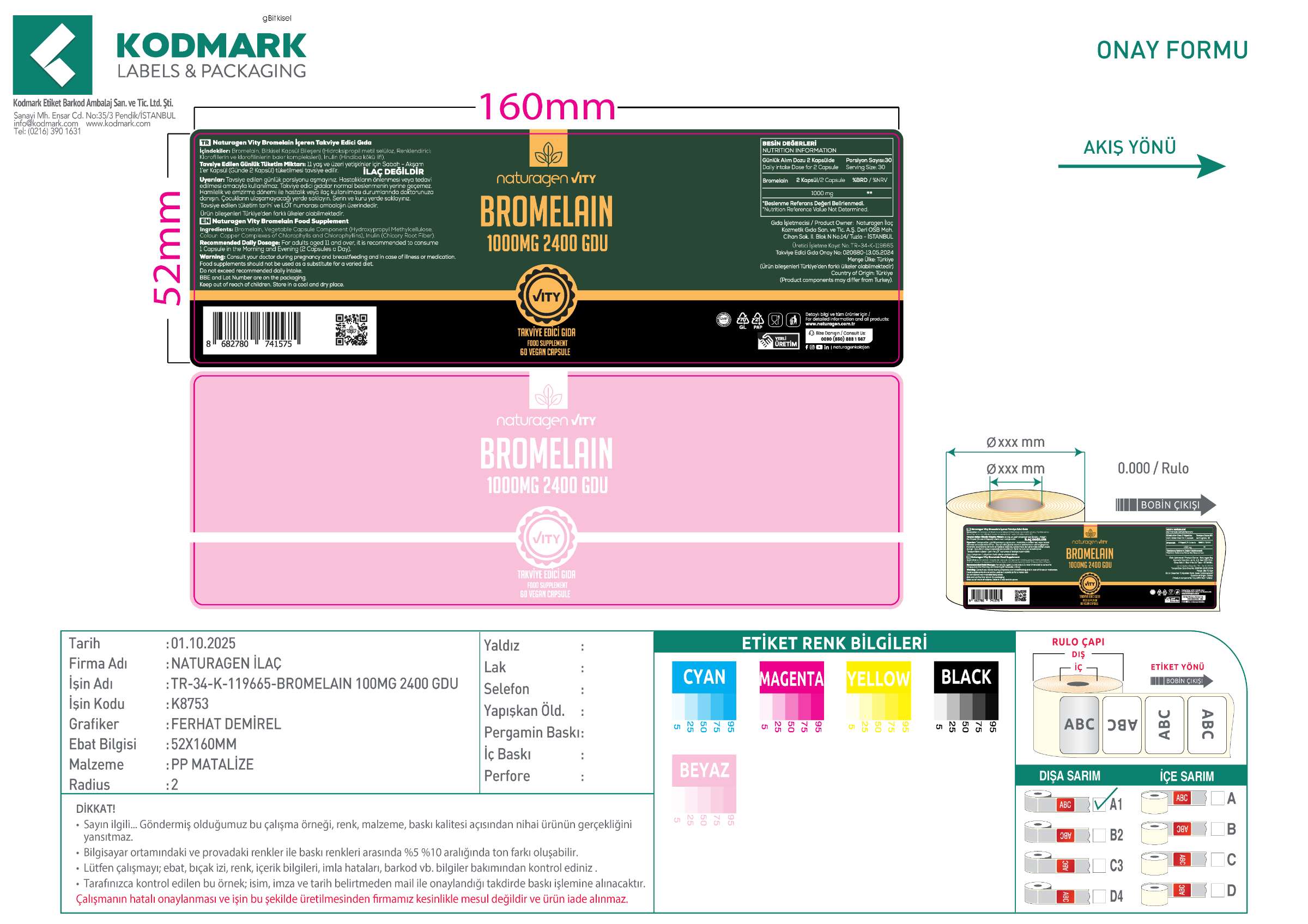 Naturagen Vity Bromelain 1000 MG 2400 GDU Ürün Barkodu ve Ambalaj Özellikleri