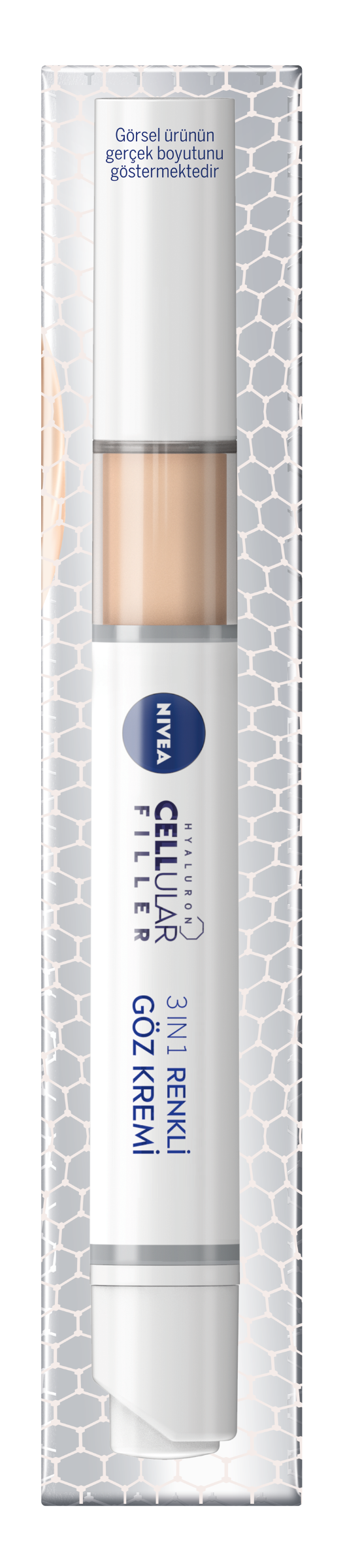 En iyi sonuç için: NIVEA Cellular Expert Finish 3in1 Cushion Renkli Yüz Bakım Kremi ile birlikte kullanmanızı öneriyoruz. Cilt bakım Rutininiz: 1. Adım: Sabah ve Akşam cildinizi NIVEA C vitamini içeren Micellar Makyaj temizleme suyu ile temizleyin 2. Adım: NIVEA Cellular Expert Finish 3in1 Cushion Renkli Yüz Bakım Kremi ile cildinizi nemlendirin, SPF 15 güneş koruması ile gün içerisinde cildinizi UV ışınlarından koruyun 3. Adım: NIVEA Hyaluron Cellular Filler Renkli Göz Bakım Kremi ile göz altınızı nemlendirin