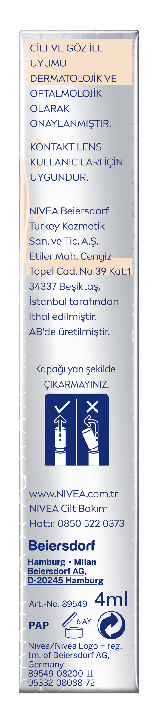 NIVEA Beiersdorf Turkey Kozmetik San. ve Tic. A.Ş, Ayazağa Mah. Azerbaycan Cad. Vadi İstanbul 1D Blok No:3/E Kat:7 34485 Sarıyer, www.NIVEA.com.trNIVEA Cilt Bakım Hattı: 0850 522 0373