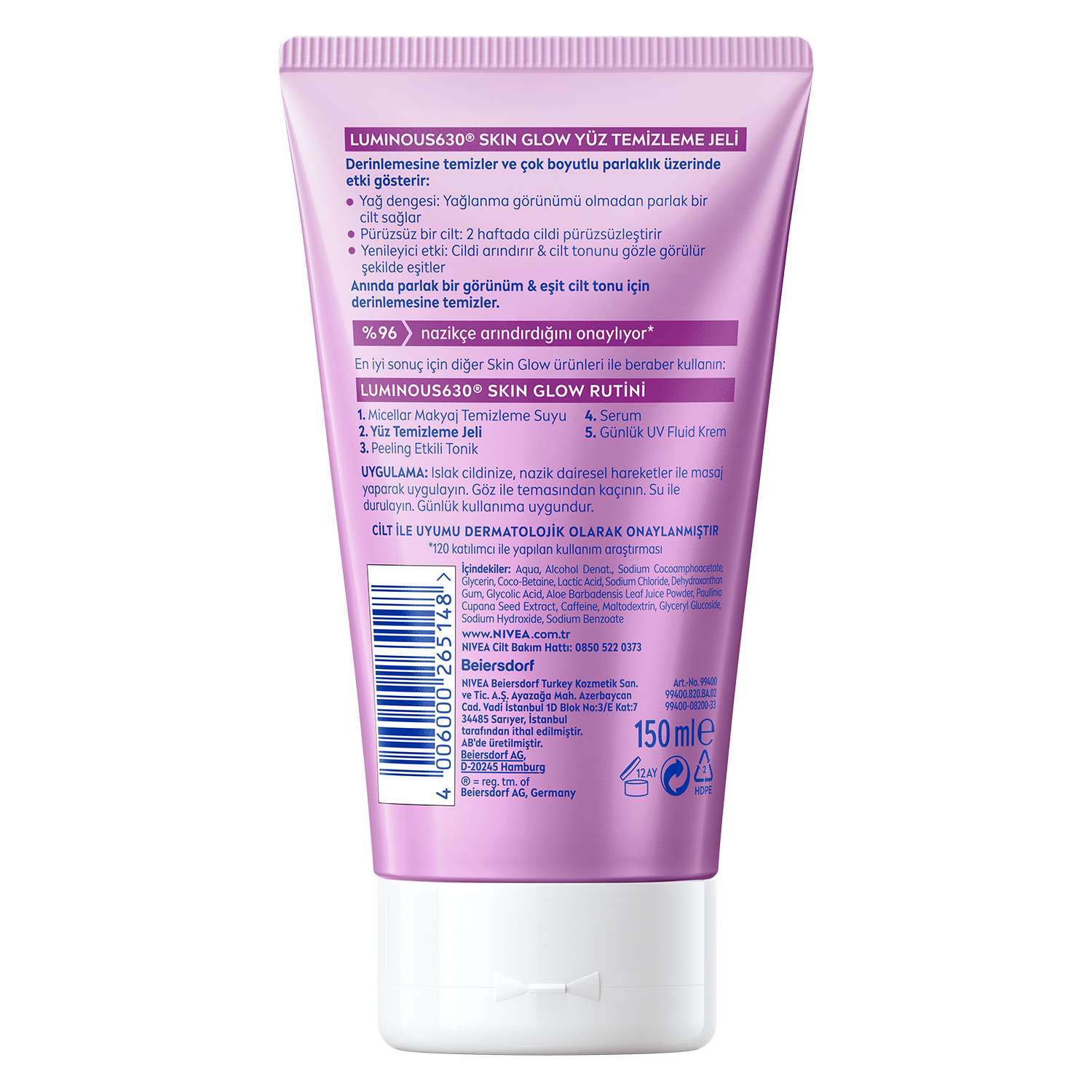 NIVEA Luminous630 Skin Glow Anında Aydınlatıcı Yüz Temizleme Jeli 150 ml İçerik