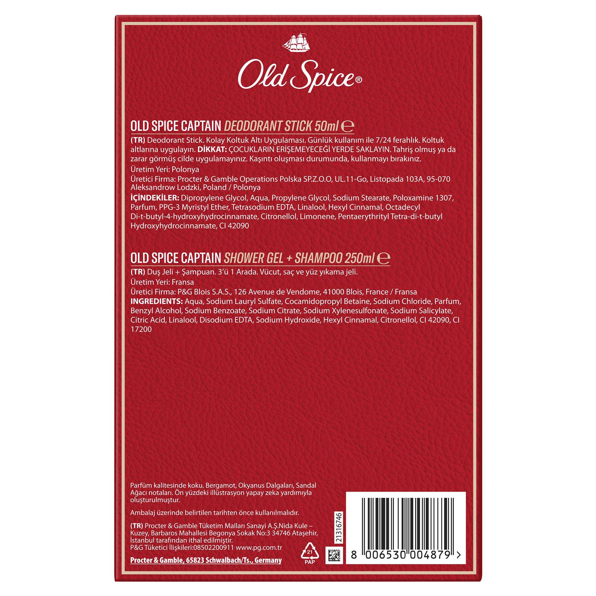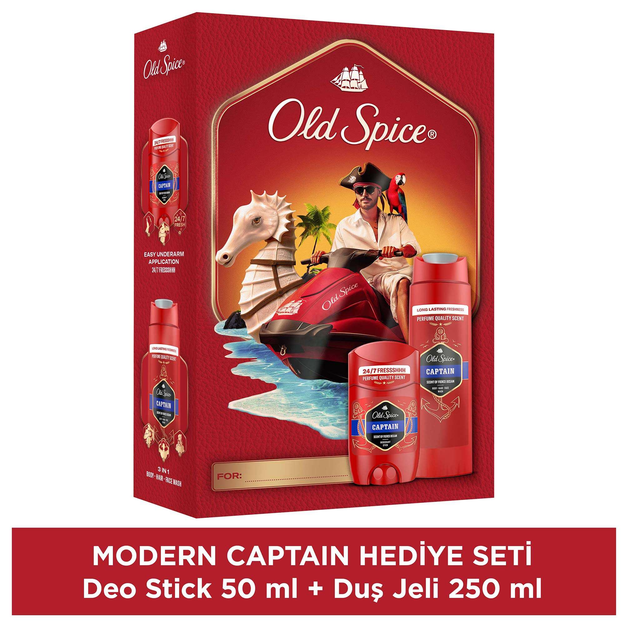 Old Spice hediye setleriyle 7/24 inanılmaz ferahlığı* deneyimleyin! Bu hediye seti, Captain 50 ml stick deodorant ve 250 ml duş jeli içerir. Havalı ve efsanevi bir kokuyla hayata yön veren modern korsanlar için mükemmel hediyeyi mi arıyorsunuz? Başka ürün aramayın! Hediye setinde Captain erkek stick deodorant ve duş jeli yer almakta; hepsi Captain tasarımına sahip bir karton kutuda mükemmel bir ambalajda. Old Spice Captain’in parfüm kalitesindeki kokusu sizi asla yanıltmaz: vahşi okyanus dalgaları, sandal ağacı ve lezzetli bergamot kokusu sizi korkusuz bir ferahlık kaptanına dönüştürecek. Bu Old Spice hediye seti nasıl olur da hala alışveriş sepetinizde olmaz? (*duş jeli ve deodorant kullanımı ile)