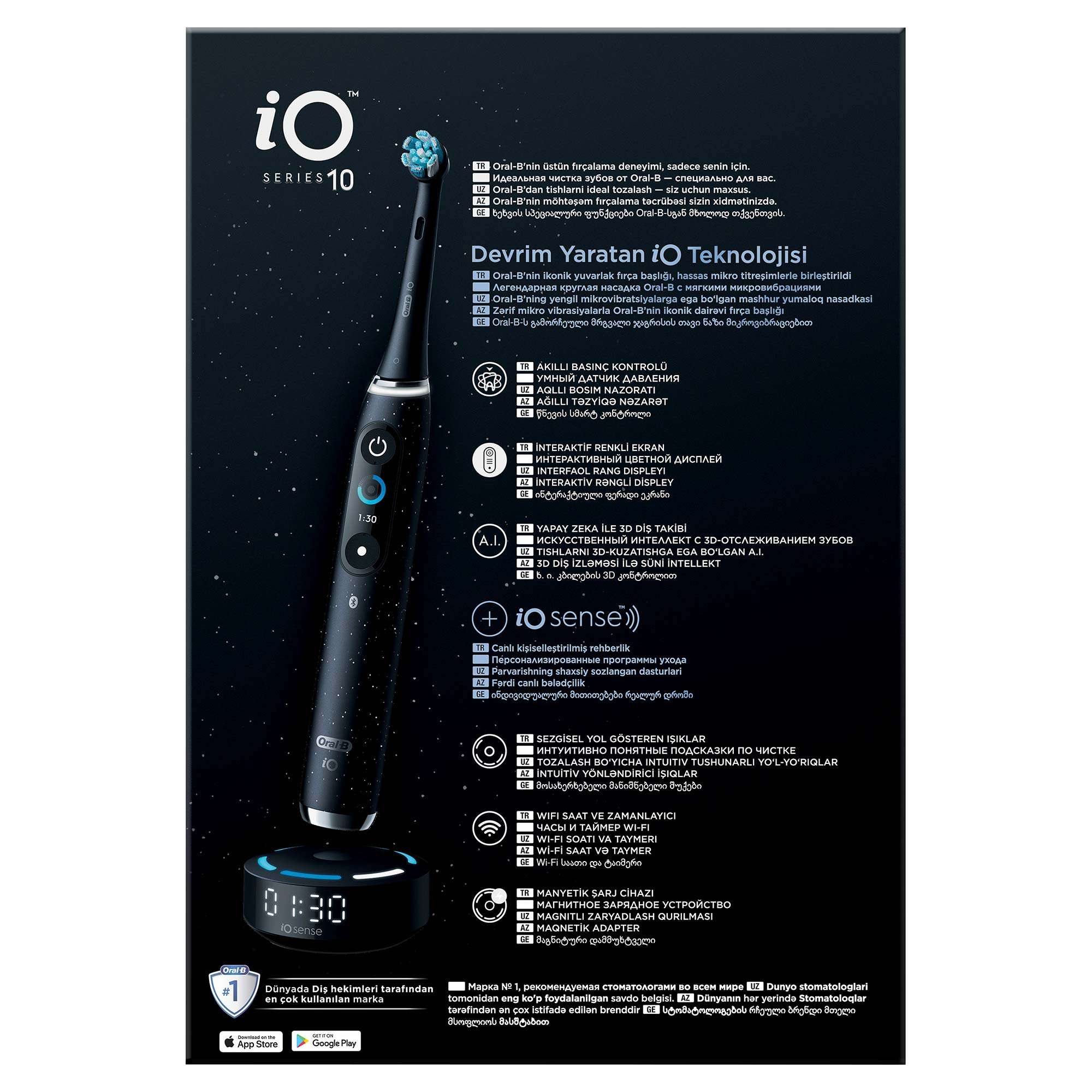 İçindekiler: ultimate clean fırça başlığı ile 1 iO10 gövde, 1 seyahat şarj kabı, 3 saatlik hızlı şarj sağlayan 1 iO Sense akıllı şarj cihazı, 1 yedek başlık