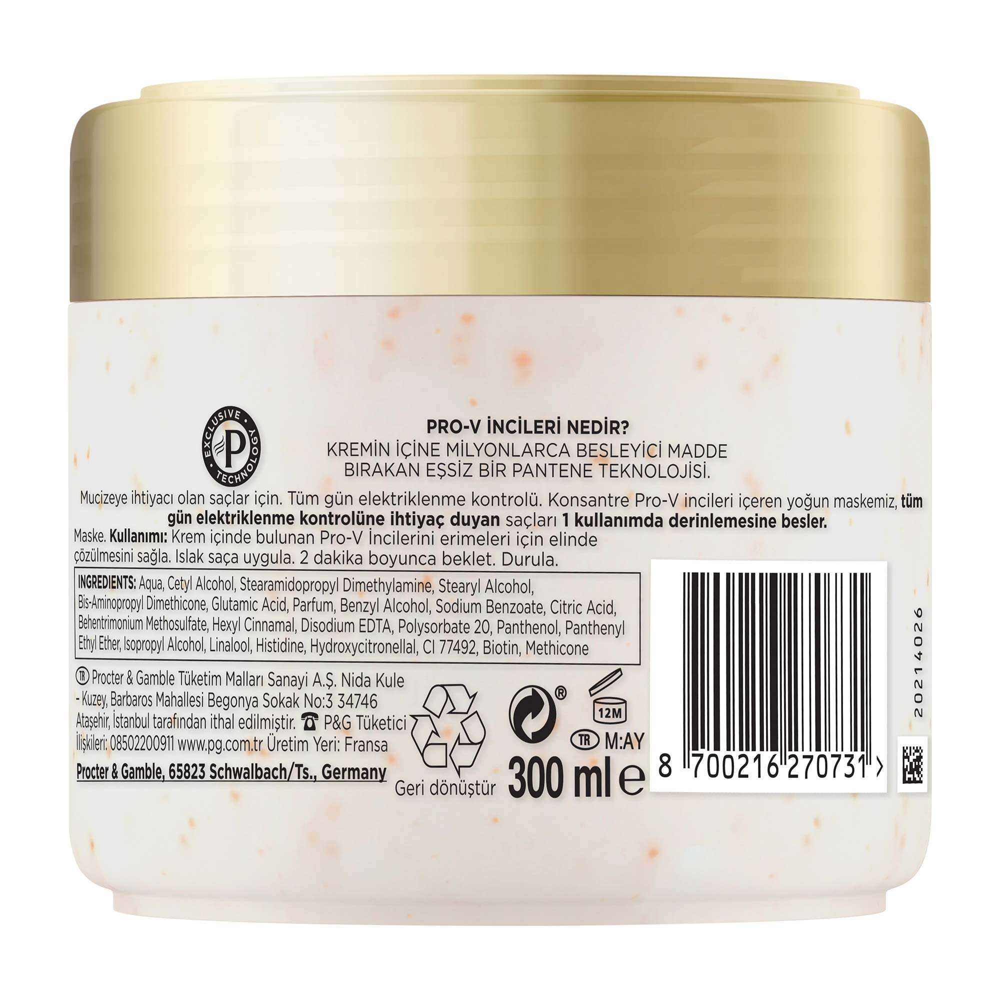 Pantene Frizz No More saç maskesi ile kabaran/elektriklenen saçlara son. Biyotin, keratin kompleksi ve yoğunlaştırılmış Pro-V incilerle zenginleştirilmiş olan uzman formülümüz, kuru ve yıpranmış saçları derinlemesine besler ve havadaki neme karşı koruyarak gün boyu elektriklenmeyi önler. Yoğun kremsi maskeyi uyguladığınızda Pro-V inciler anında çözünerek milyonlarca besleyici maddenin saça nüfuz etmesini sağlar. İlk kullanımdan itibaren saçı derinlemesine besler. Şampuan, saç kremi ve saç maskesinden oluşan Frizz No More serimiz ile saçlarınızın kusursuzluğunu gün boyu koruyun. Buklelerinizi belirginleştirip saçlarınızda kusursuz bir görünüm elde etmenizi sağlamak için özel olarak tasarlanmış saç bakım rutini.