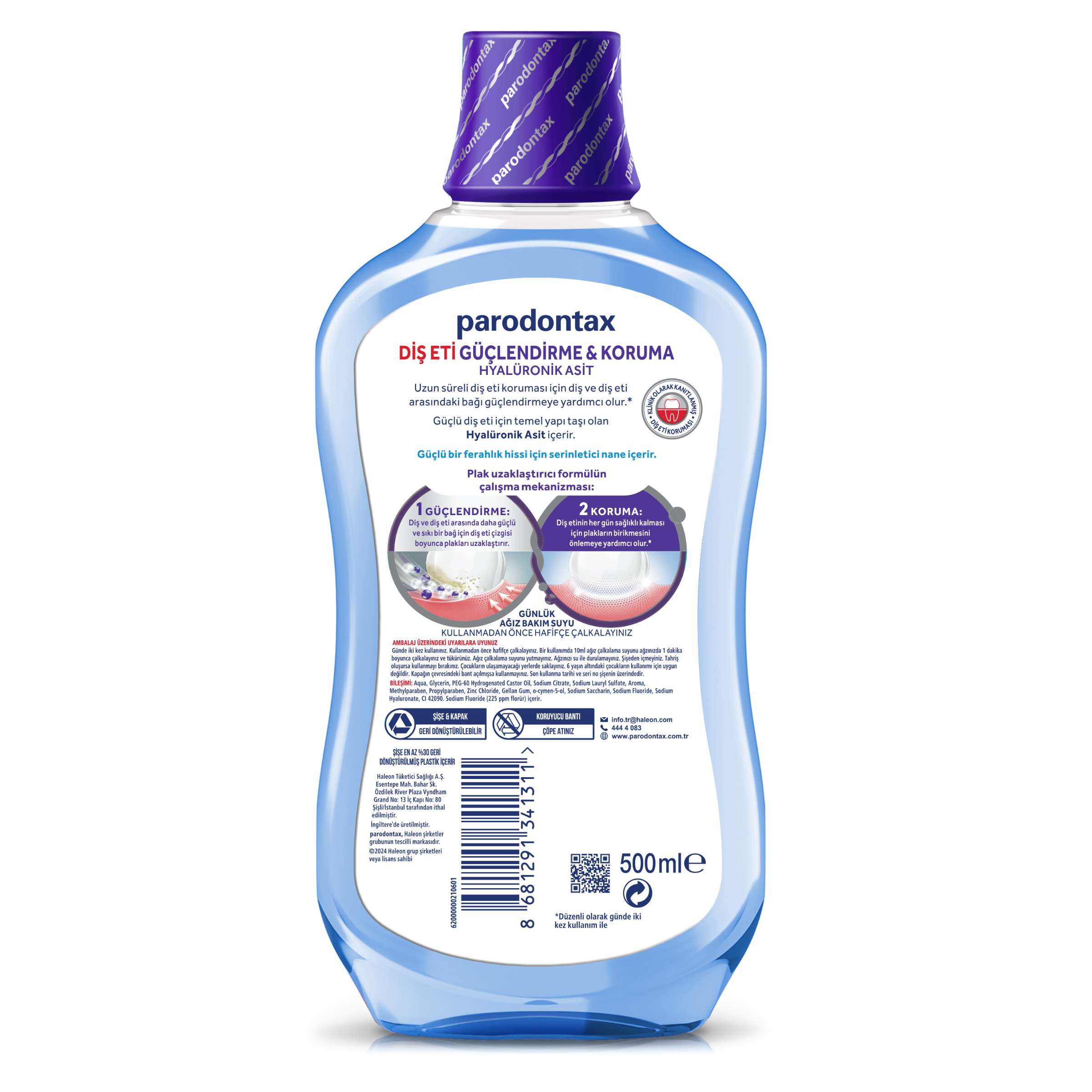 Parodontax Diş Eti Güç&Kor Ağız Bakım Suyu 500 ml Bileşenleri: