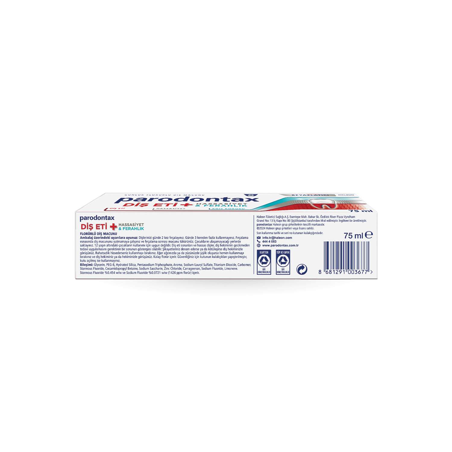 Parodontax Diş Eti + Hassasiyet Beyazlatıcı Diş Macunu 75 ml Bileşimi