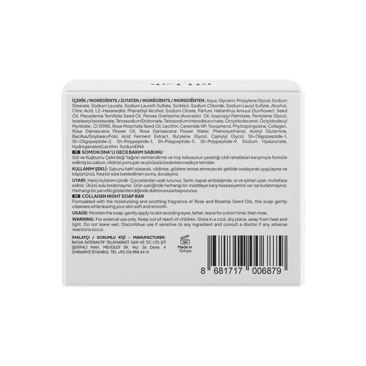Ph Lab Collagen Night™ Temizleme Bar 50 ml , hijyenik ve şık ambalajında sunulmaktadır. Günlük kullanıma uygun boyutu sayesinde pratiklik sağlar. Kutunun üzerinde içerik bilgileri ve kullanım talimatları detaylı şekilde yer alır.