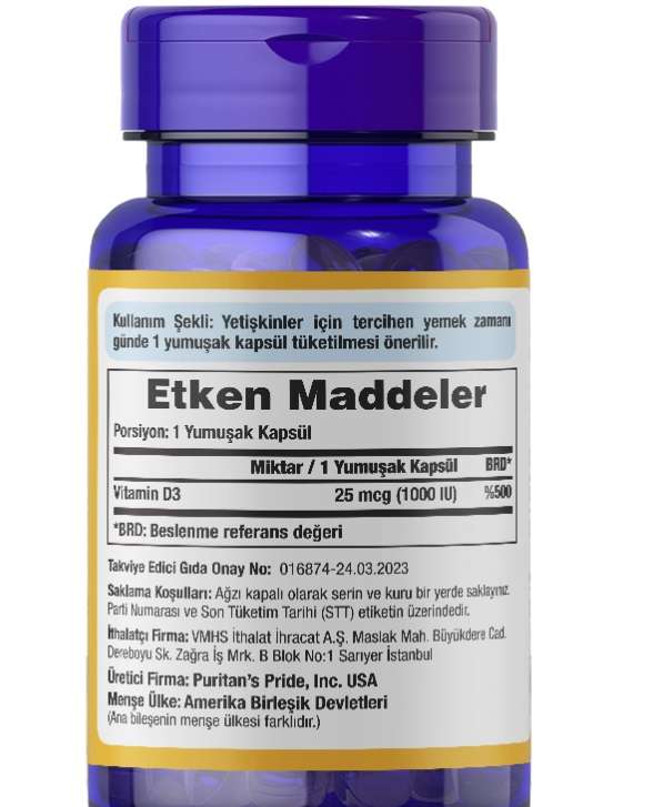 Puritan's Pride Vitamin D3 25 Mcg 1000 IU Nedir?