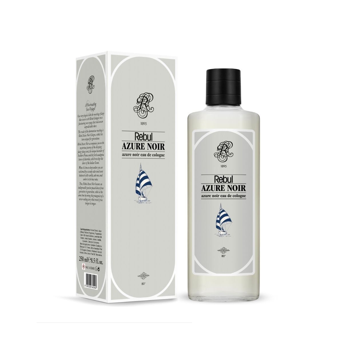 Rebul Azure Kolonyası EDC 250 ml, Rebul’un klasik ve zarif tasarımlı karton kutusunda, cam şişe ve dökme tıpasıyla özenle paketlenmiş şekilde size ulaştırılır.