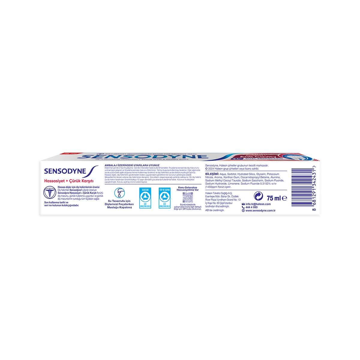 Sensodyne diş hekimleri tarafından önerilen 1 numaralı markadır. Günde iki kez düzenli fırçalama ile dişleri 24 saat boyunca hassasiyete karşı korur ve çürük oluşumunu engellemeye yardımcı olur.