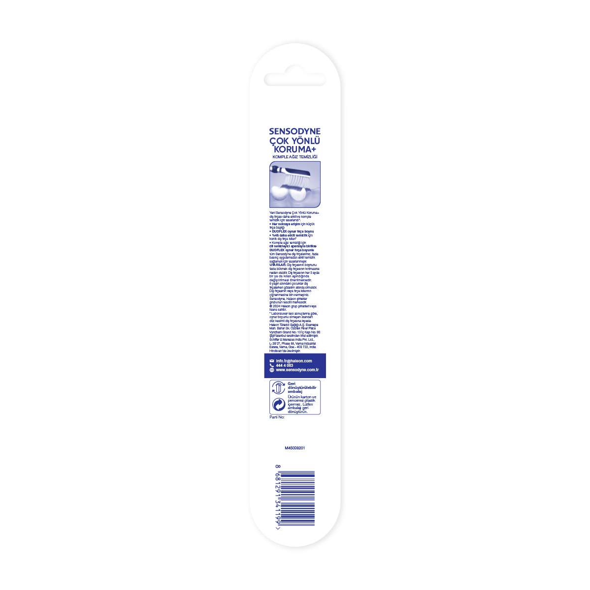 Sensodyne Çok Yönlü Koruma + Dil Temizleyicili diş fırçası, hassas dişler ve diş etleri düşünülerek tasarlanmış özel bir diş fırçasıdır. Günlük ağız bakımında dişlerin nazik bir şekilde temizlenmesine yardımcı olurken diş minesini koruyarak etkili temizlik sağlamayı hedefler. İnce ve yumuşak kılları sayesinde diş yüzeyini nazikçe temizleyerek ağız hijyeninin korunmasına destek olur.