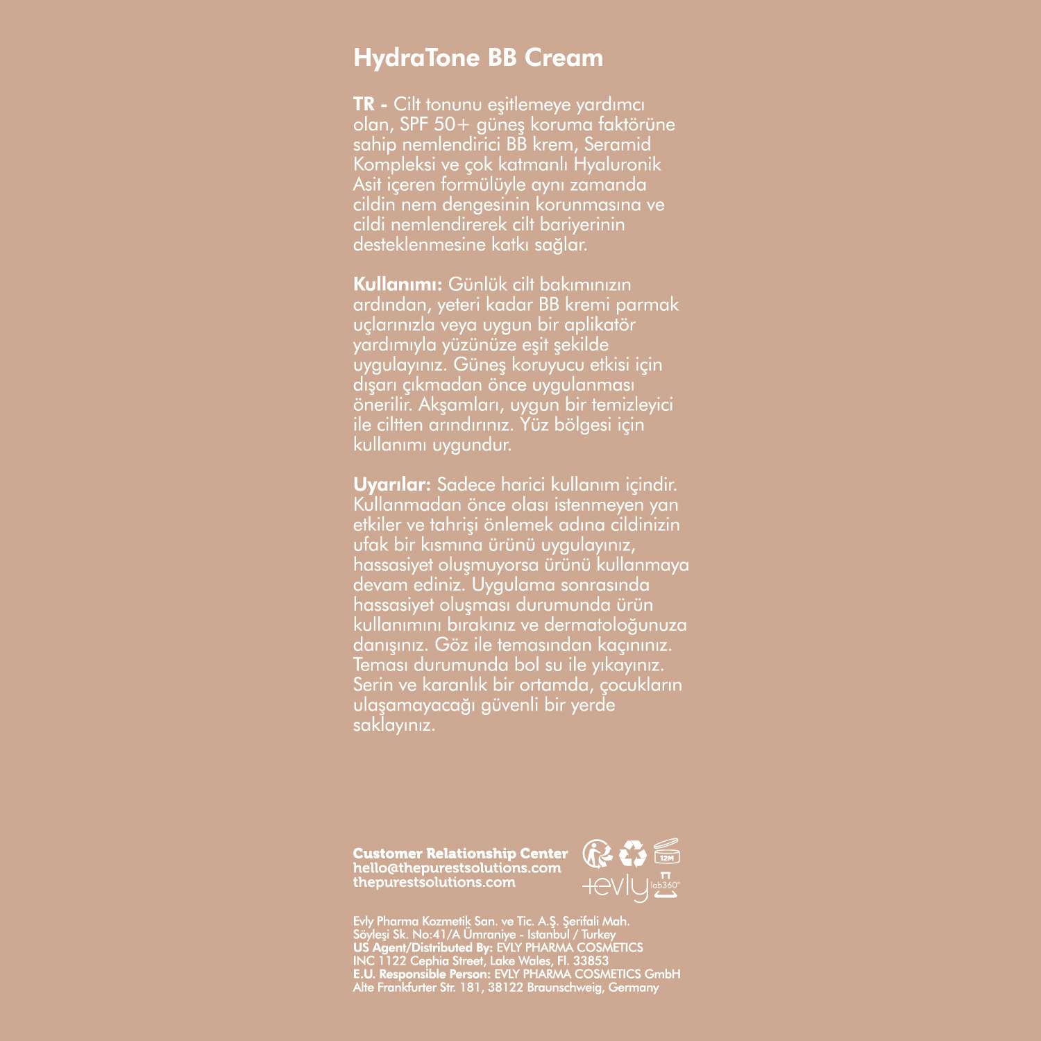 Evly Pharma Kozmetik San. ve Tic. A.Ş. , Şerifali Mah. Söyleşi Sk. No:41/A Ümraniye – İstanbul / Türkiye , hello@thepurestsolutions.com