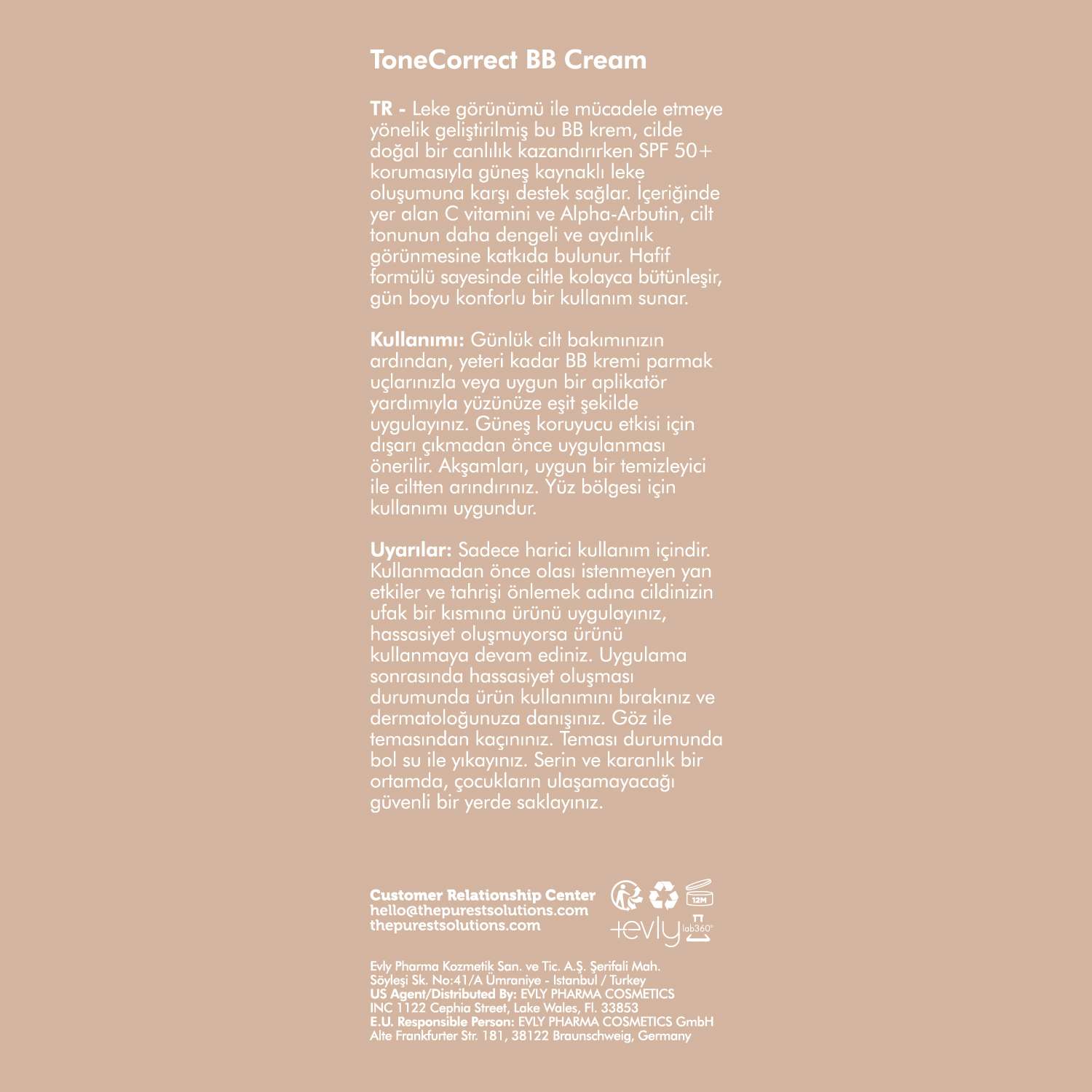 Evly Pharma Kozmetik San. ve Tic. A.Ş. , Şerifali Mah. Söyleşi Sk. No:41/A Ümraniye – İstanbul / Türkiye , hello@thepurestsolutions.com