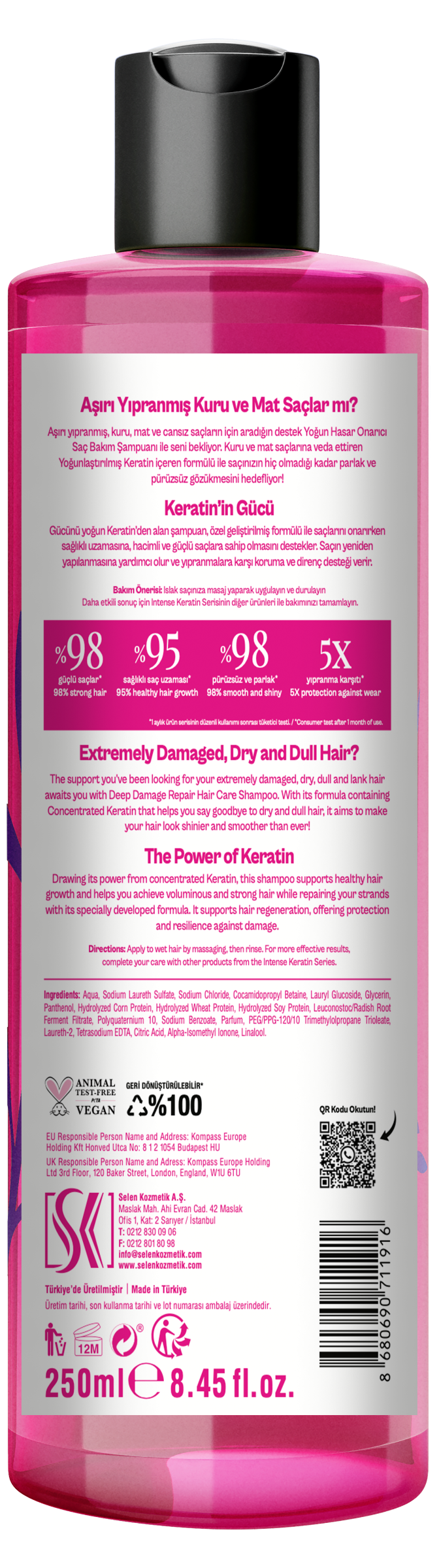 Yoğun Keratin Kompleksi: Saç liflerinin yeniden yapılanmasına yardımcı olur, saçın güçlü ve dirençli olmasını destekler.